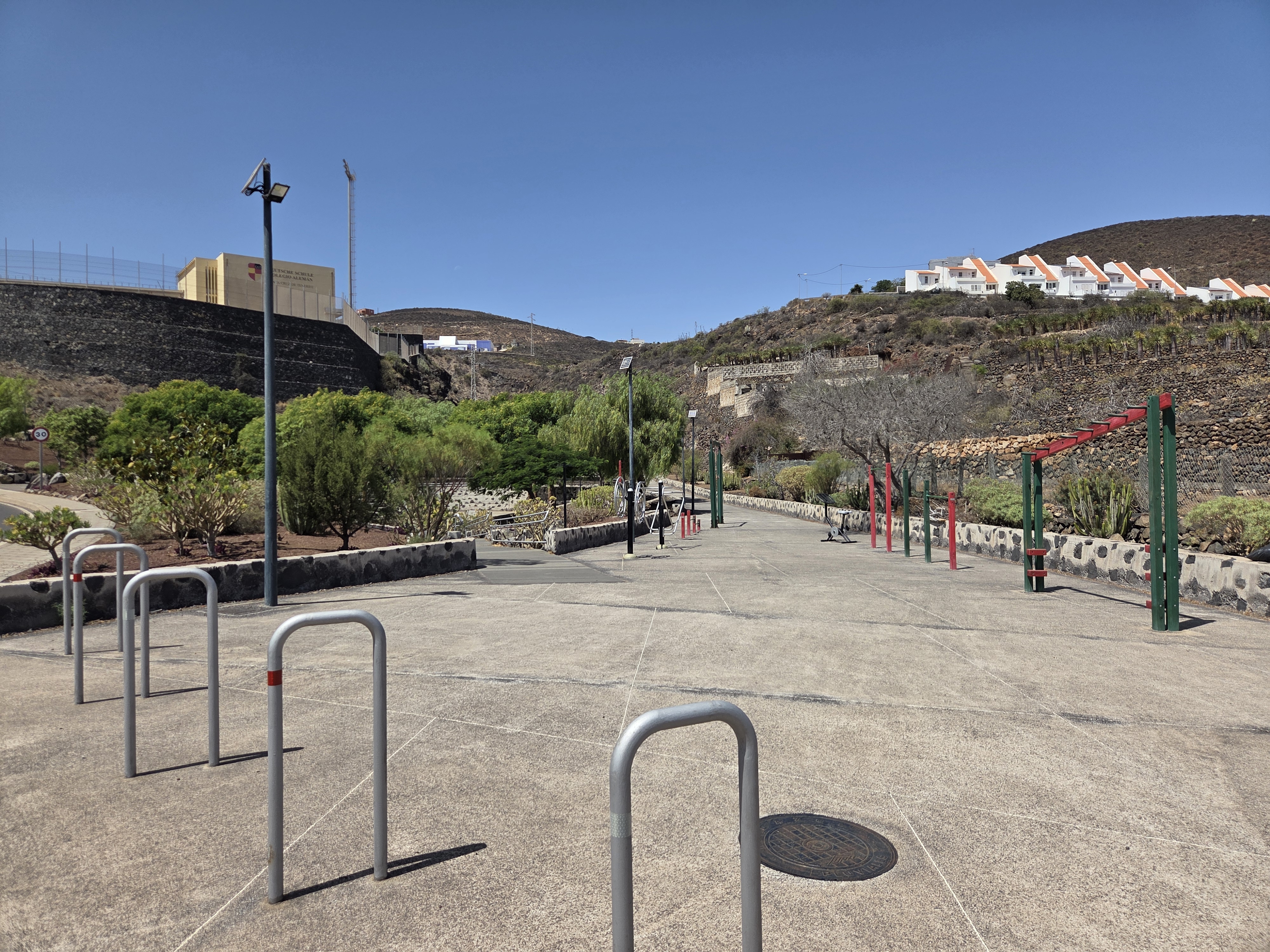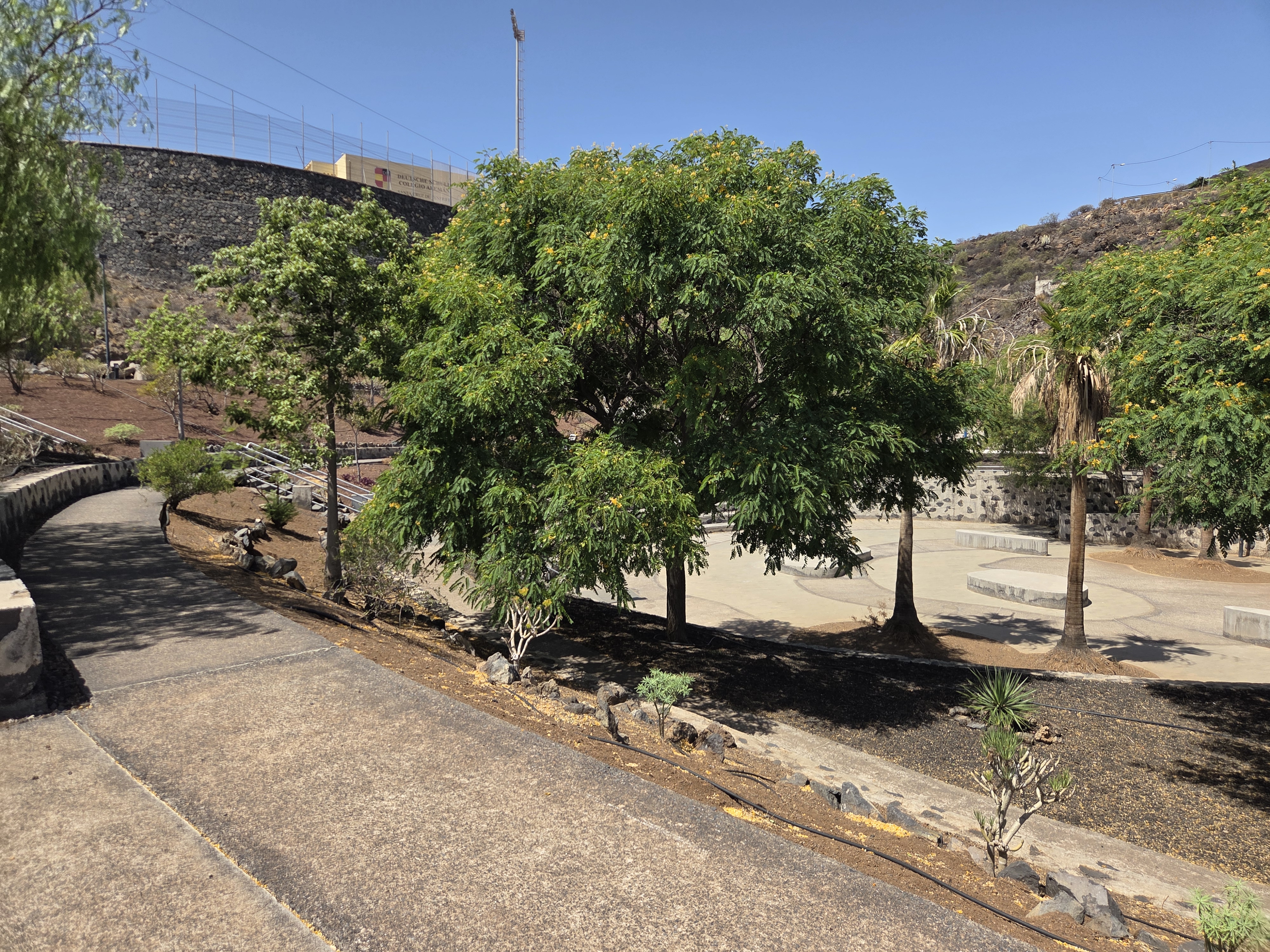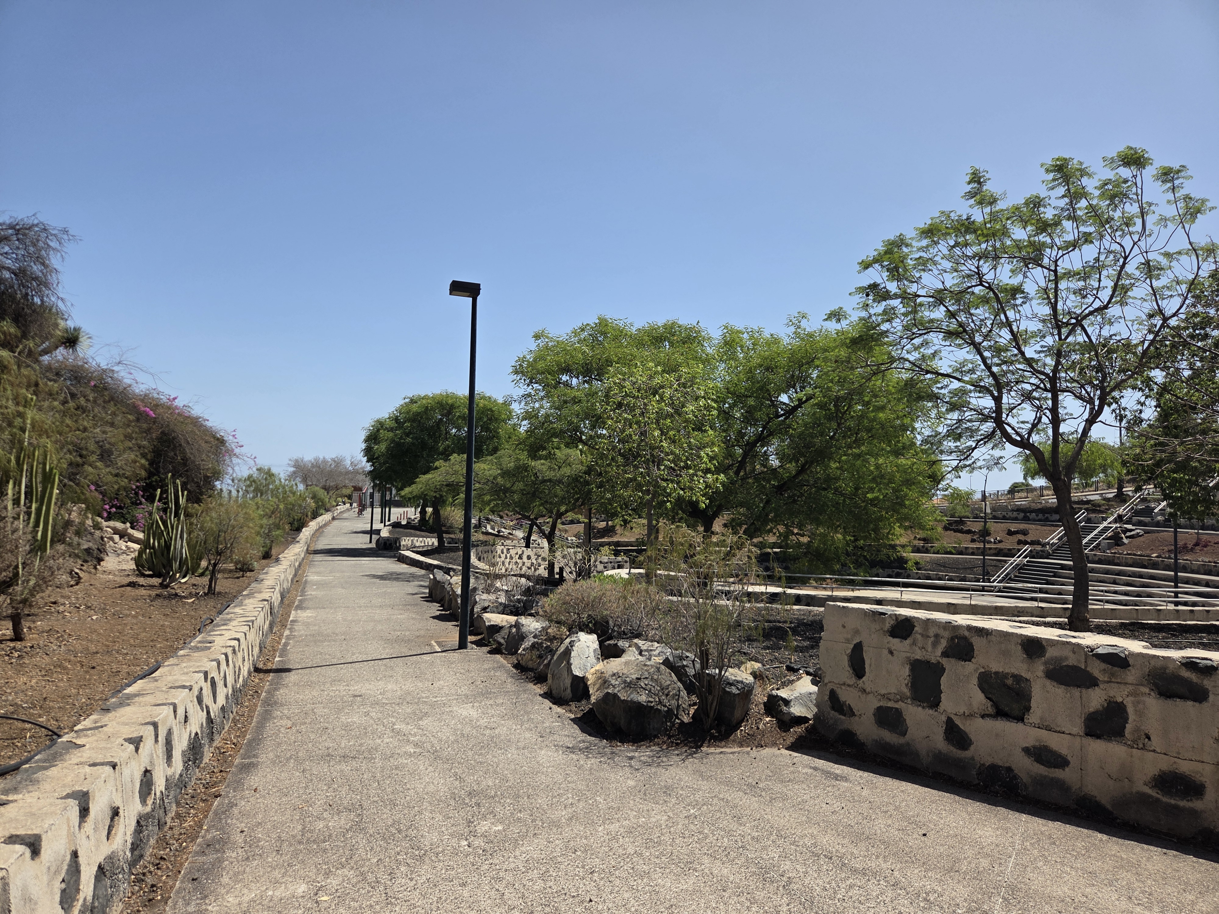 Along the park edge you’ll notice xeriscape beds with succulents and endemic shrubs—low-maintenance landscaping that thrives in Tenerife’s south-easterly climate.