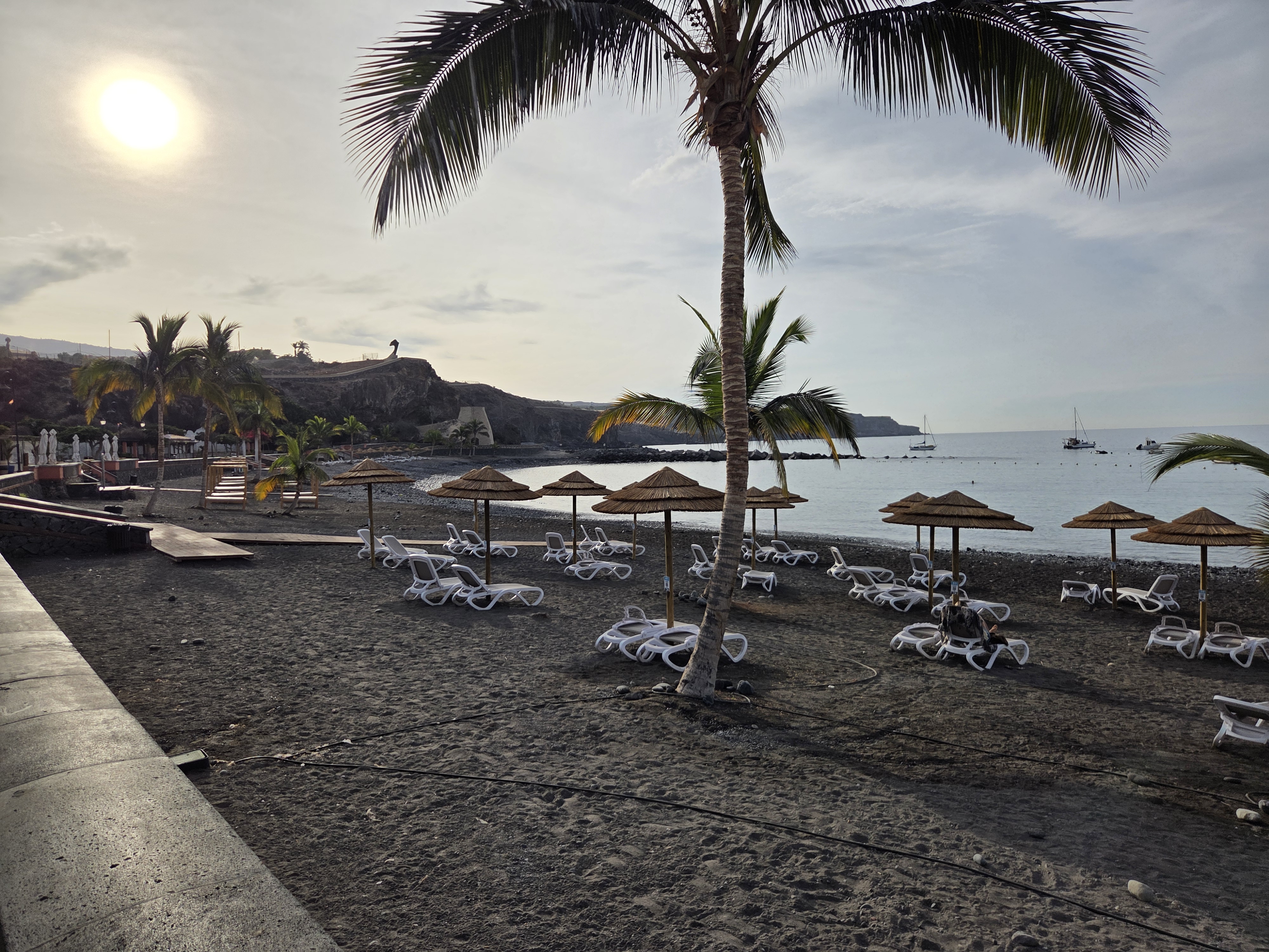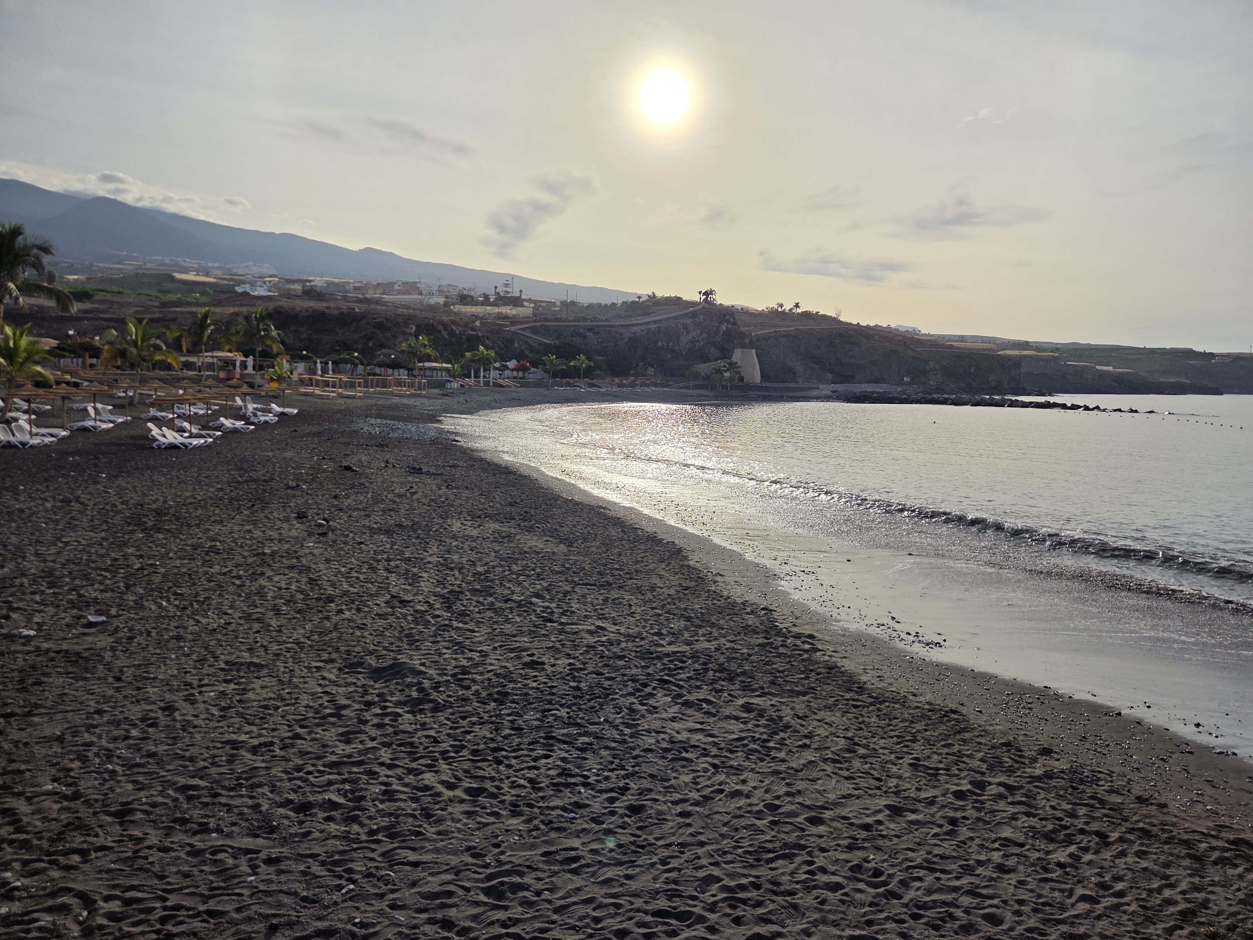 Playa San Juan is a sheltered, family-friendly bay on the southwest coast of Tenerife. The beach combines fine volcanic sand with a broad promenade shaded by palms, easy access points, and nearby cafés. Calm water, sunbeds with parasols, and facilities like showers and ramps make it an inviting stop whether you’re here for a quiet swim, a seaside stroll, or marina views.
