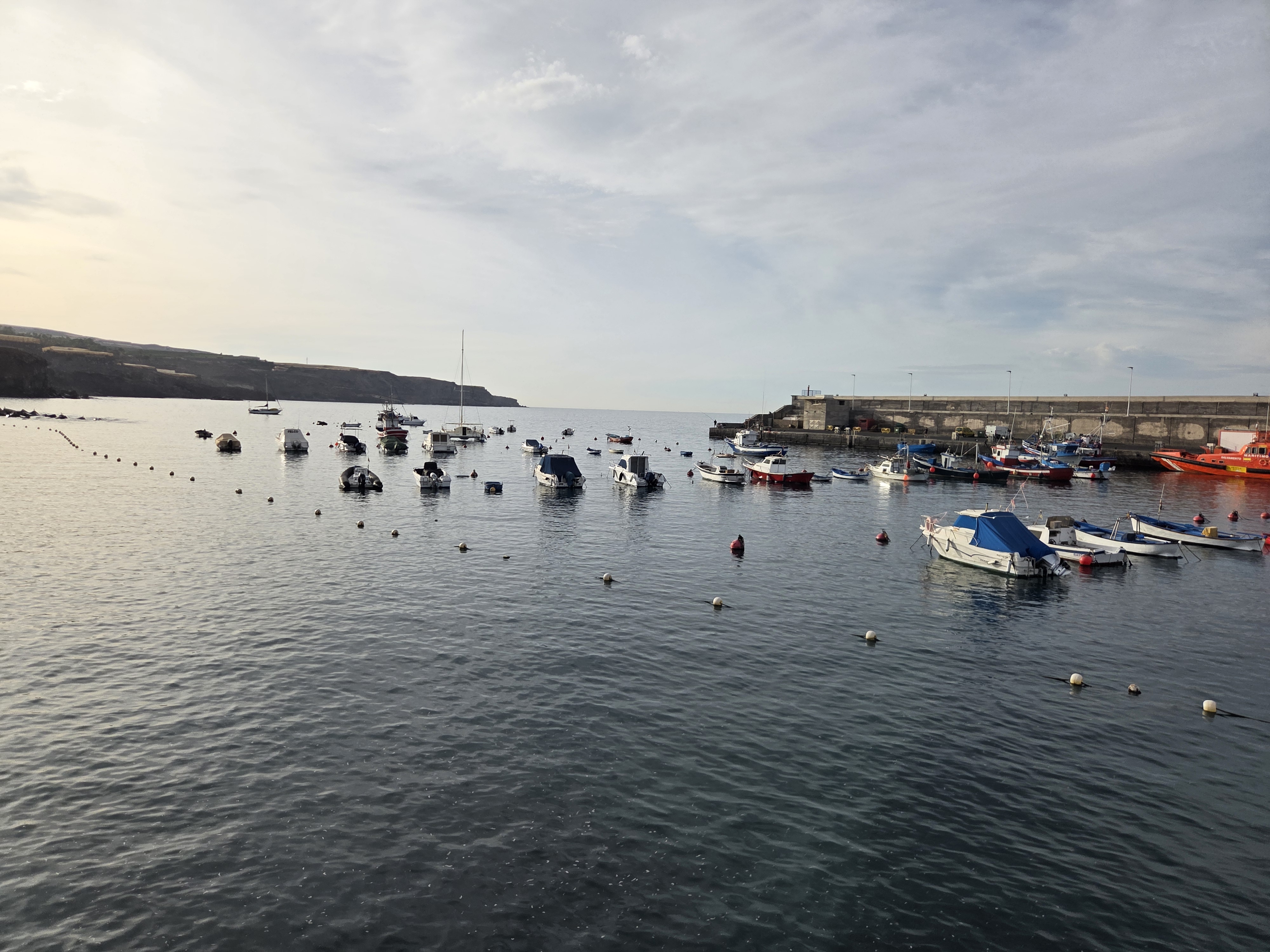 At the western end of the bay sits the fishing harbor and marina. Watching the small boats at anchor and the harbor wall at sunset adds a local, maritime feel to the seaside walk.
